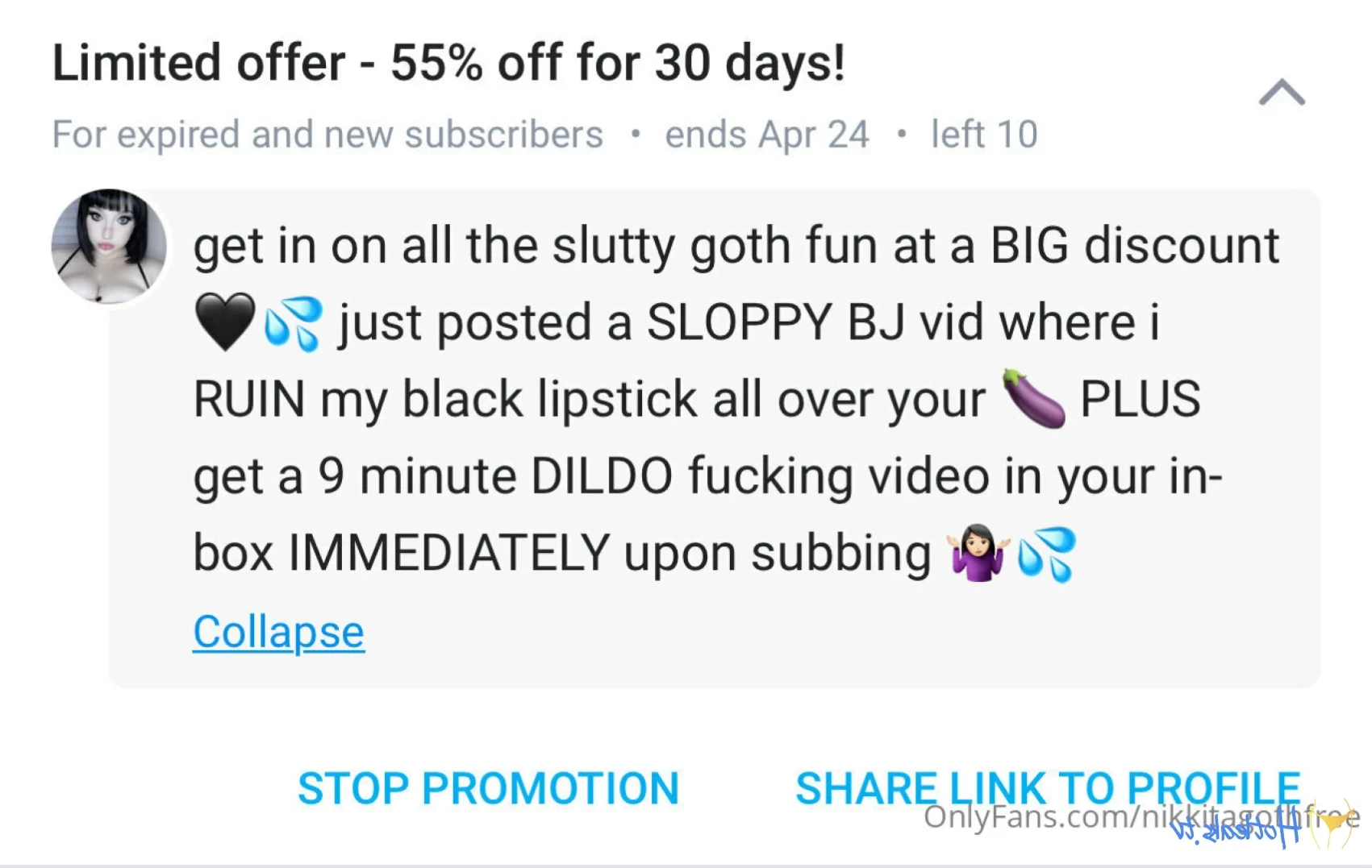 Nikkitagothfree - last 6 sale spots on my VIP page nikkitagoth PLUS